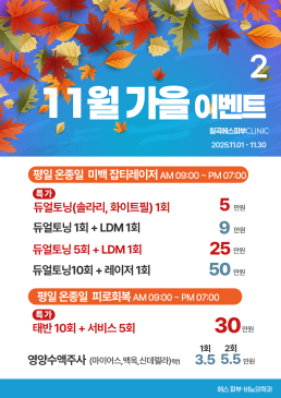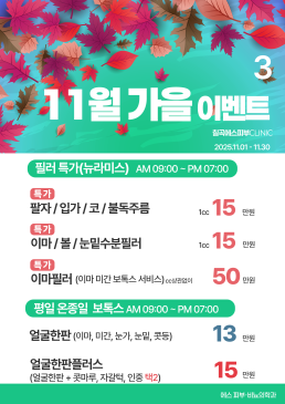 비뇨 클리닉S-Urology Clinic 요로결석 24시간 | 전립선 | 방광염 방광내시경 | 혈뇨 | 성병 | 정관수술 Click피부 클리닉S-Skin Clinic 보톡스 | 필러 | 여드름 | 레이저 점제거 | 기미 | 삭센다 | 물광주사 Click NOW EVENT놓칠 수 없는 혜택, 이달의 이벤트!! 11월가을이벤트 1 11월가을이벤트 2 11월가을이벤트 3 마운자로 위고비 인모드1 인모드2 상담원 연결칠곡 에스비뇨기과의 친절한 상담원이 빠른 답변을 약속드립니다.비뇨기과 질환이나, 피부과 시술에 대해 궁금하신 부분을 시원하게 해결해 드리겠습니다. 053-325-0075 오시는길대구광역시 북구 학정로 416 203호